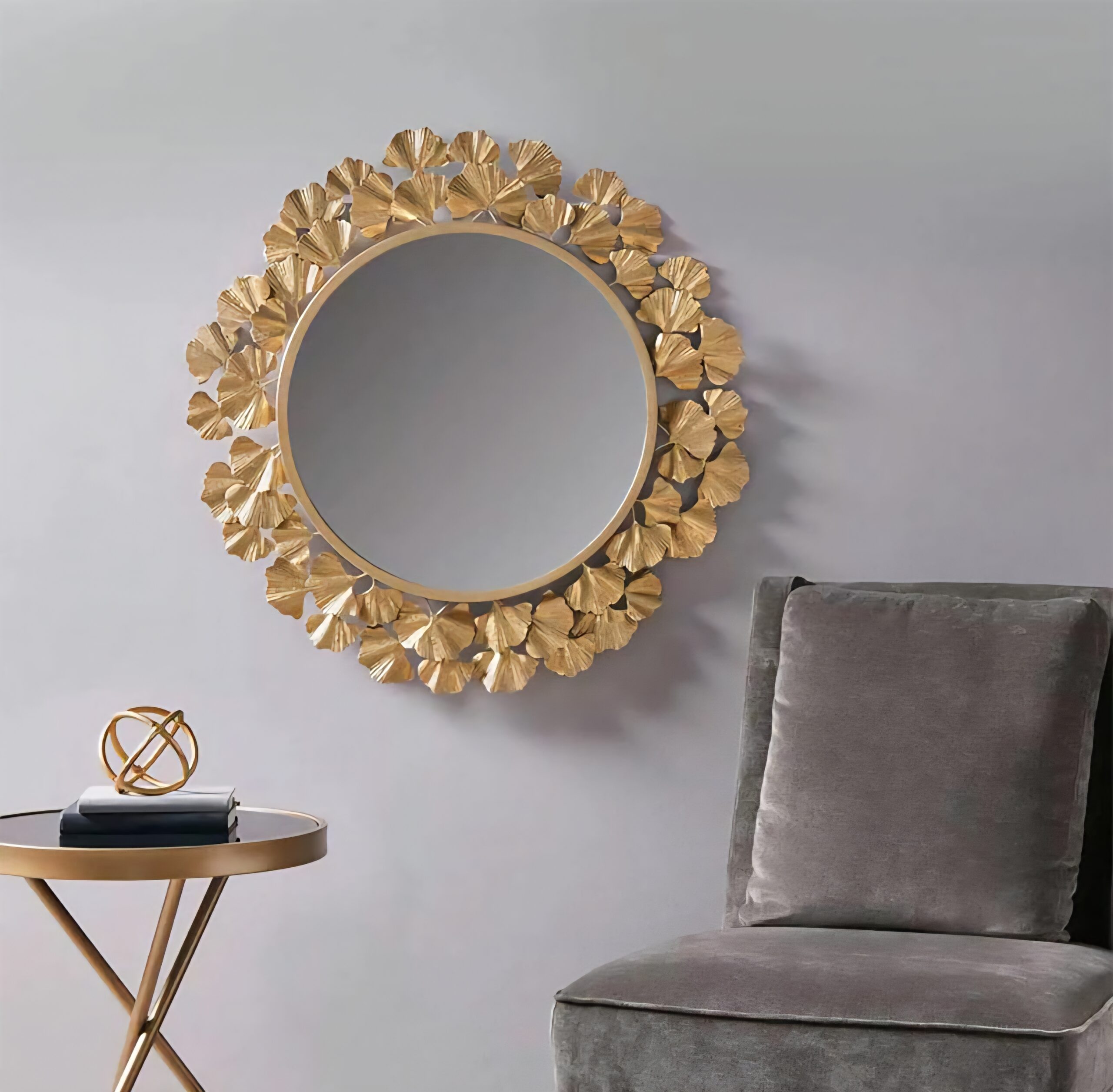 Be the first to review “Ginko Leaf Round Wall Mirror”