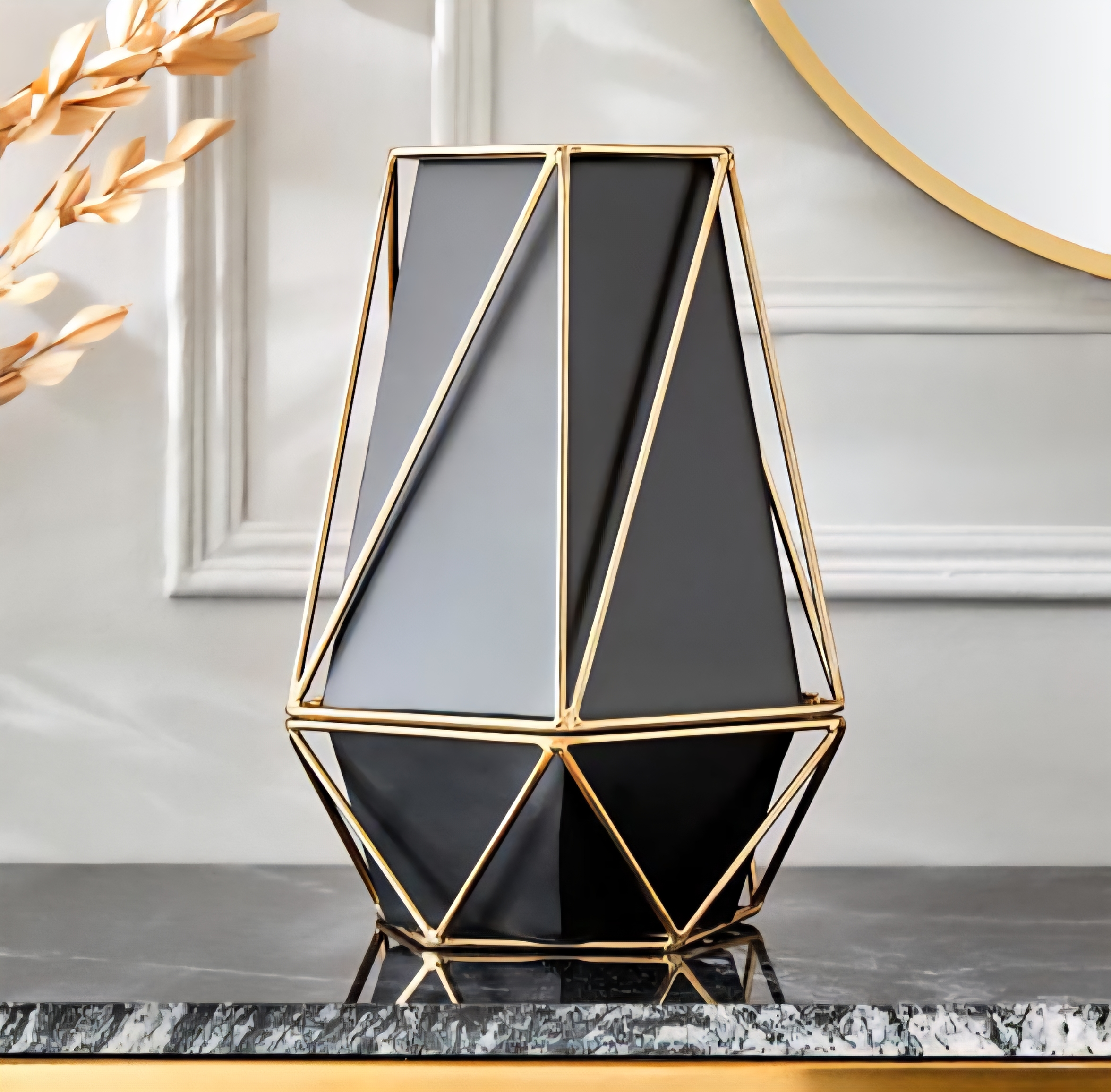Add a modern touch with this vase. Crafted from metal, it’s bold, geometric design makes a striking statement, perfect for showcasing florals or as an artistic accent.